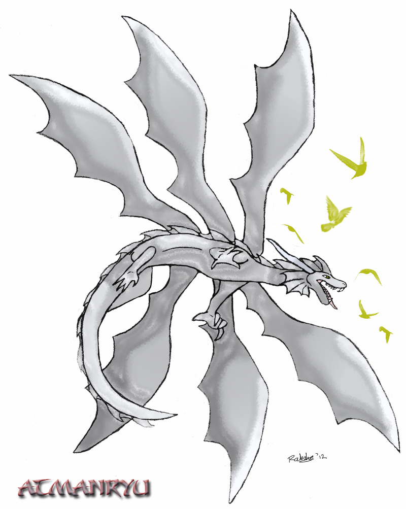 AtmanRyu the red dragon chose Bahamut. I assumed he meant the D&D dragon king, rather than the original mythical entity, wich is just a huge fish. heh. So here is the platinum dragon king, with six wings as a tribute to the FF Bahamut. Acompanied by his seven golden dragon guardians in their canary form.