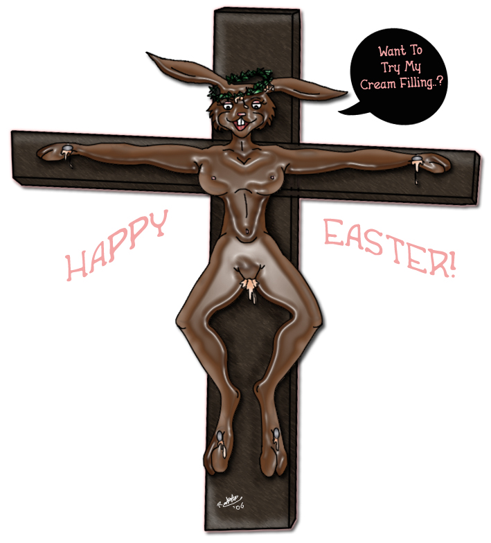 Yes, it is the somewhat depraved and twisted Easter picture for this year. Sexxy Chocolate Christ Bunny! Have you had your cream filling yet? ;) Very happy with the chocolate effect on this one.