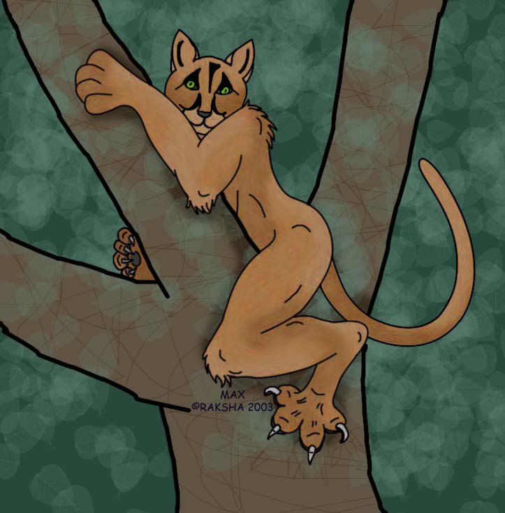 Commission for Maxamillian, a friend of Bullet. A cougar spirit guide. I like this one, because it achieves what I aim for in my 'anthro' animals - as close to animal as possable, and as far away from 'furry design' as possable in the process. I want a more 'wild and feral' feel to my 'werecreatures'. I was never paid for this, but I don't mind, the image was a perfect experiment that turned out the way I wanted it to. At least in form.. the background still sucks ass.