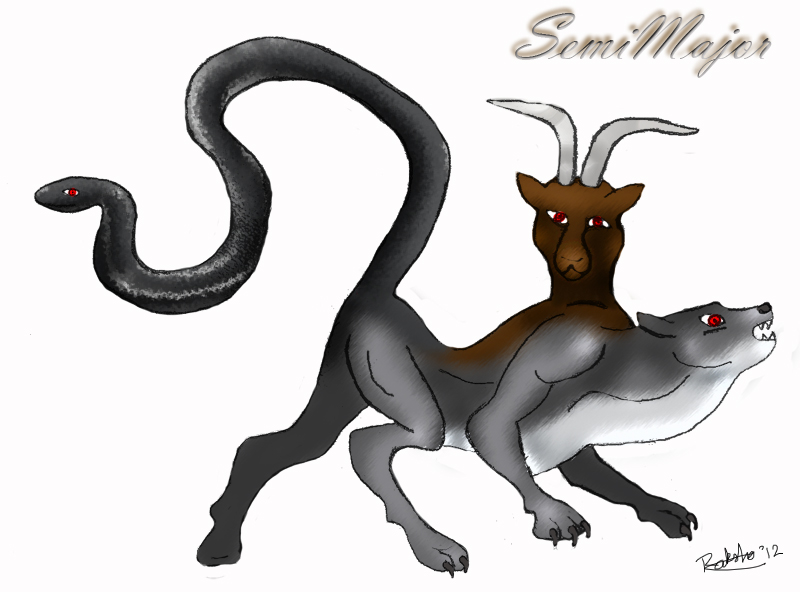 Semi Major the wolf, who chose Chimera. I gave it a wolfy visage instead of the traditional lion.