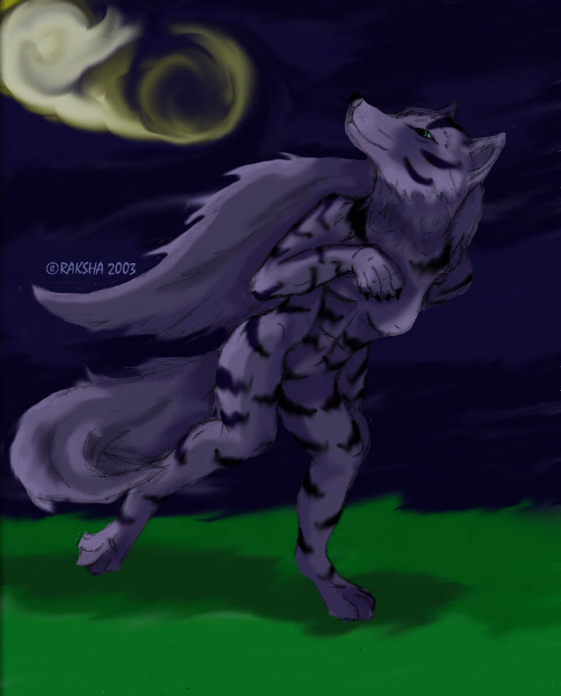 My half of a trade with ShadowWaker. Her half can be seen in my gift gallery. She kinda turned out looking purple here... I think she's suposed to be grey, with brindled stripes. This was as close to 'brindled' as I could get at the time. The weird swirly thing is the moon. Or something. Some experimentation going on there.