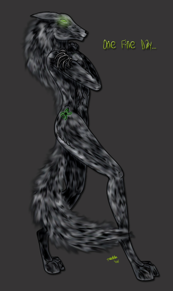 One fine day, Fax will discover his beautiful black shewolf perfect mate. Until then, here are some pretty portraits of the wonderous female. I tried to experiment with 'furr' textureing. I don't think it worked very well, but he liked them so that makes it all good. Very happy with the body shape though. :) The second 'silloette' picture is a bonus I got when fiddling around with the background layers. I thought it looked pretty awsome so I kept it as a seperate image. Some people think it looks like one of those Ipod adds, others think it reminds them of a James Bond movie opening.