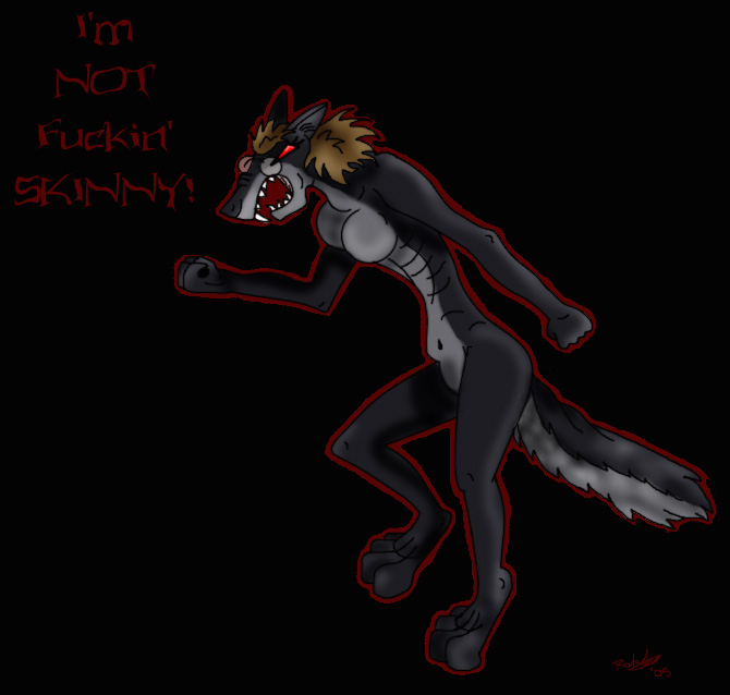 Ahhh yes.. the piece that started it all. I did this as a joke to Bullet who had been losing weight at a fast rate. She was skin and bones literaly, but kept denying it and telling people to quit calling her skinny. This is my reply to that. :) I started the art war.